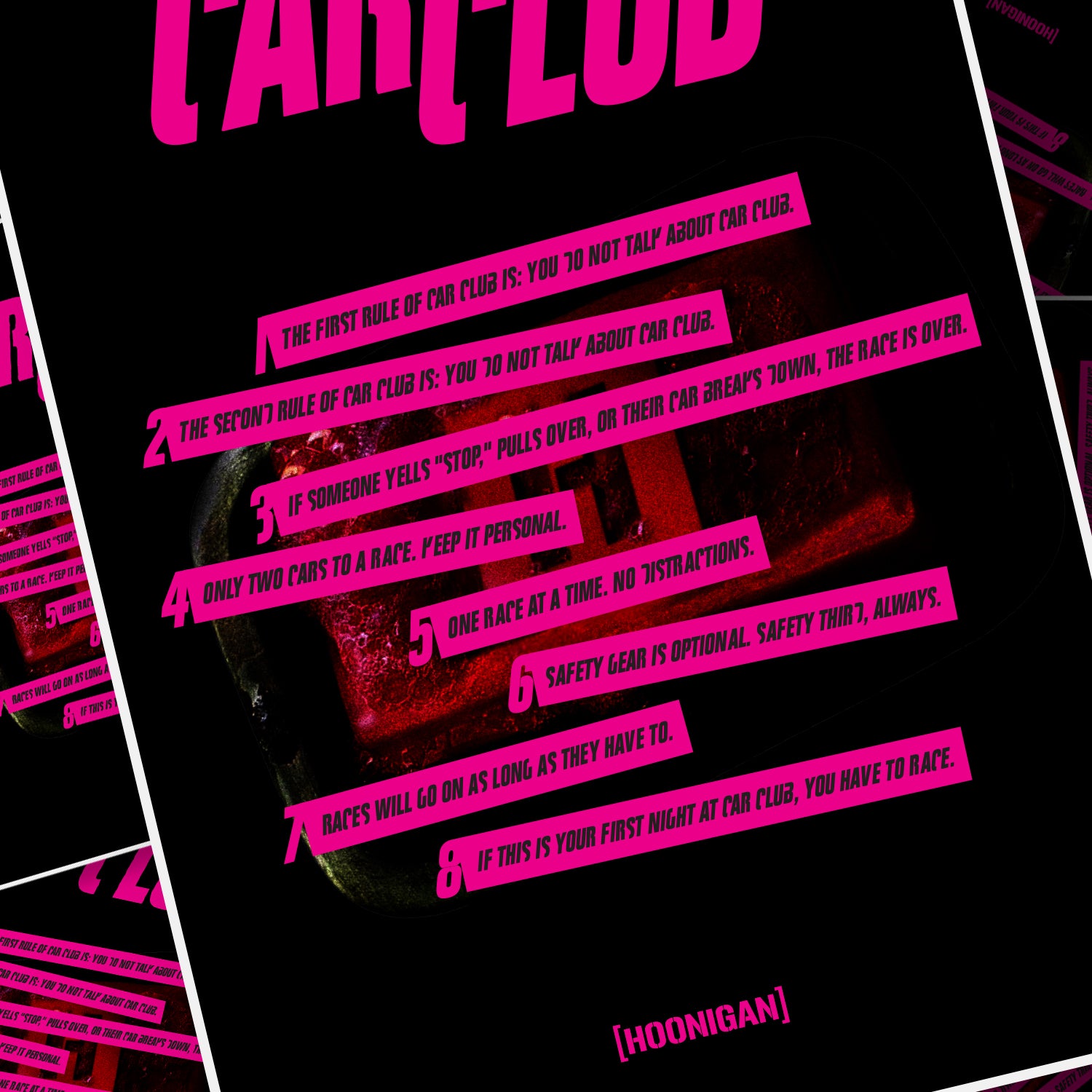 No CGI, no stunt doubles—just pure automotive mayhem. Bring the movies home with the NEW Hoonigan CAR CLUB 18" x 24" Movie Poster 🎬